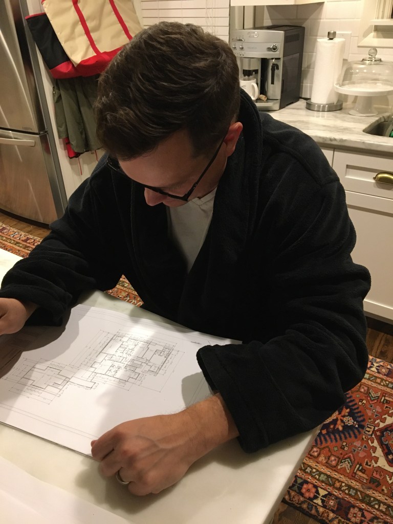 Here is Josh red-lining the house plans for me at approximately 8:37PM because I’ve looked at them 1,297 times and need a fresh set of eyes on them: