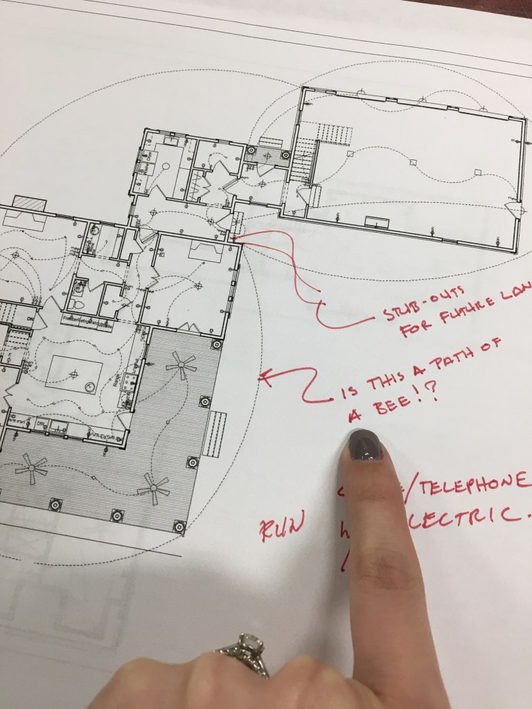 I had made a first pass with the redlining and then had asked Josh to go through the plans and make notes as well. A few hours into working on the changes and updates, as I was going cross-eyed trying to double-check the window and door schedules, I flipped to the reflected ceiling plan and saw this note from Josh…