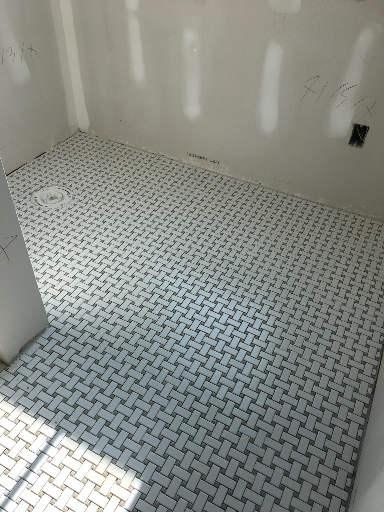 Last exciting thing for the day: guest bath floor! I am a sucker for a classic basketweave.