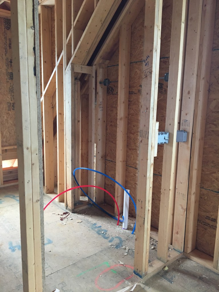 We are in the not so sexy stage called “rough in”. It is during this stage that they put in the guts of the house, which are critical for it to function, but not the most photogenic.